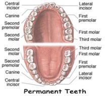 There generally 32 permanent teeth and 20 baby teeth.In each quadrant of mouth there are five baby teeth that is